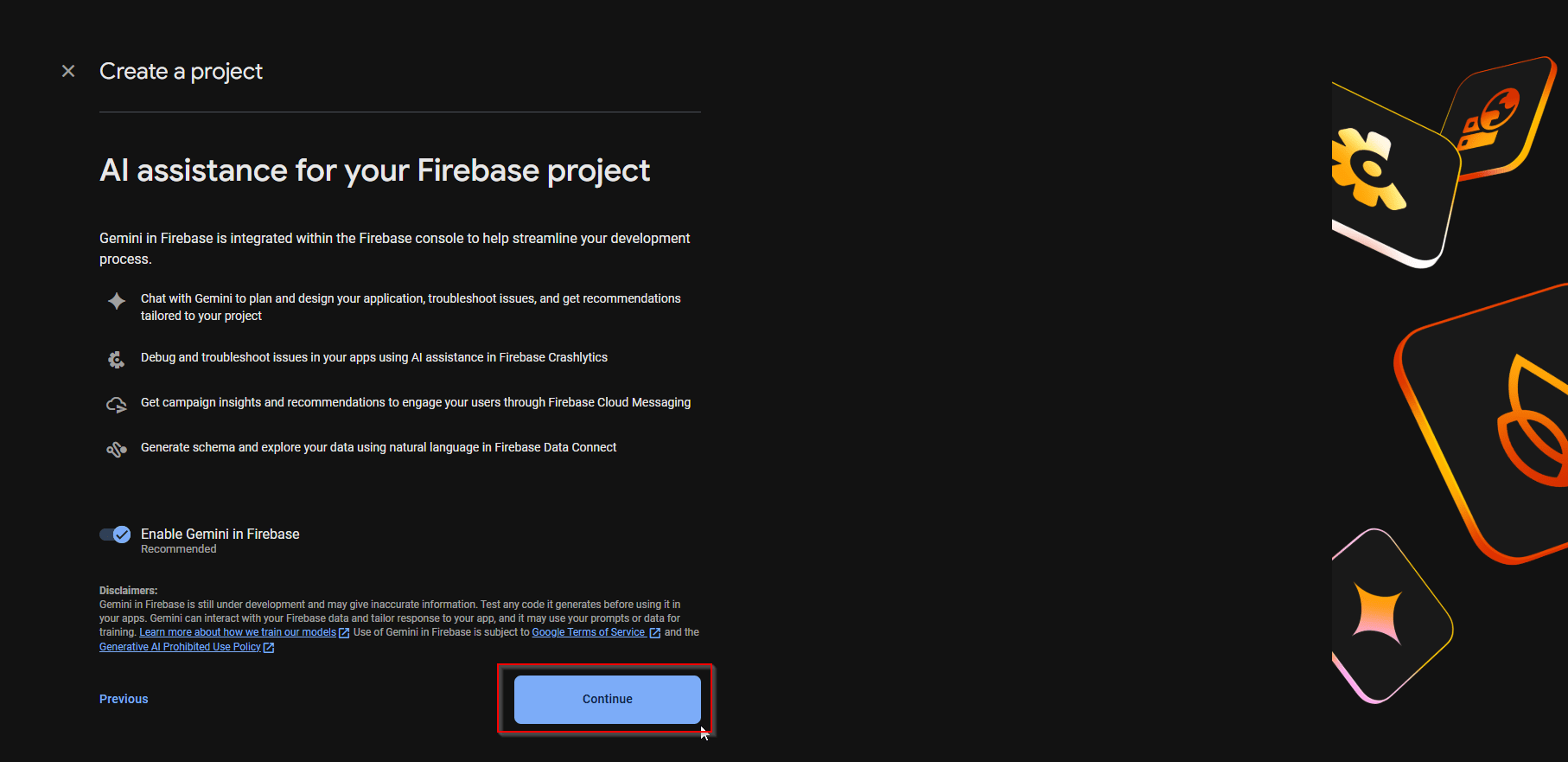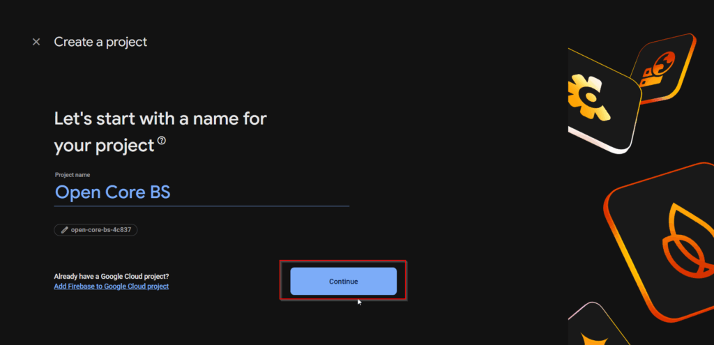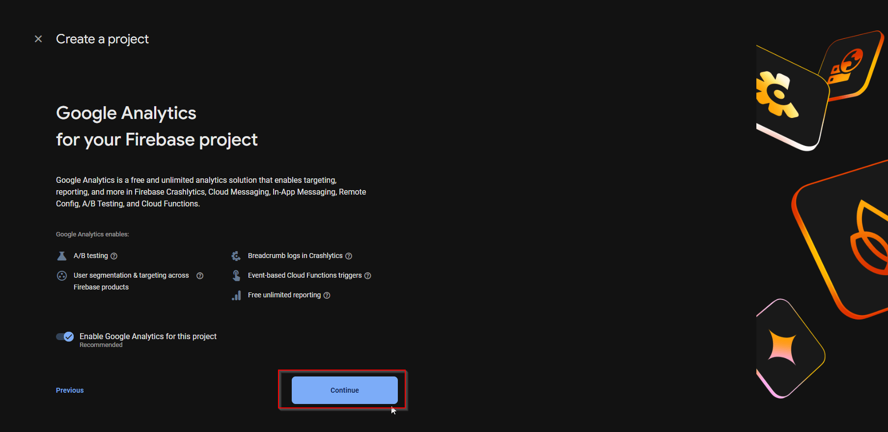 Step 4: Choose the Google Analytics project if you have enabled Google Analytics for this project, then click Create a project.