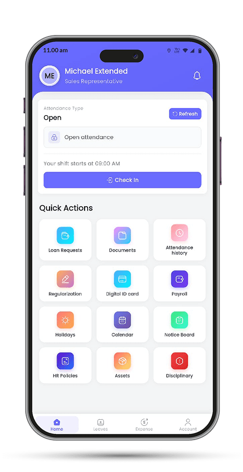 The Open Core BS Employee App streamlines employee management, including attendance, leave, payroll, and more, while simultaneously keeping teams connected and ensuring seamless HR operations.