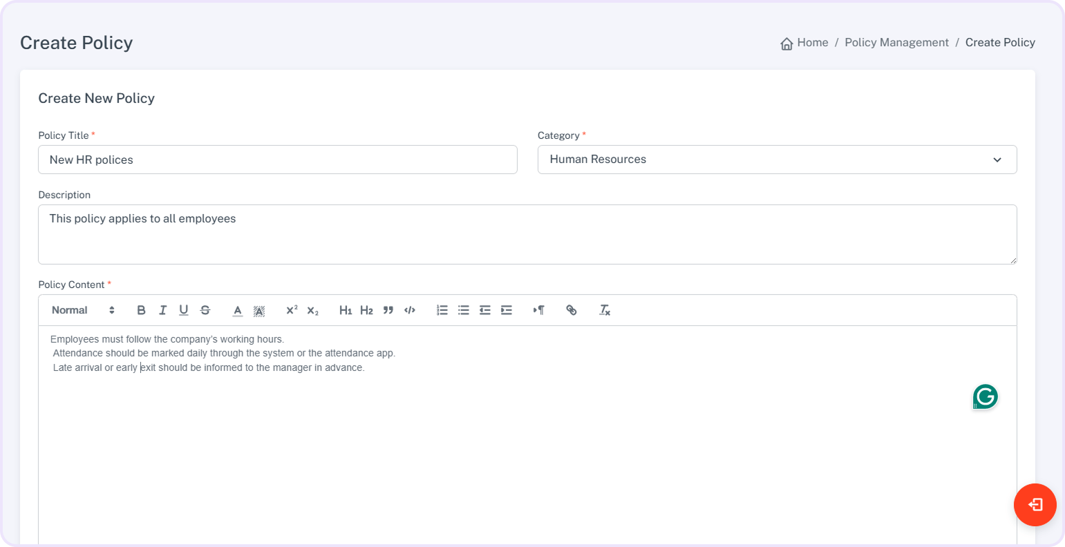 Manage and share company policies easily while keeping employees informed and aligned. Organize HR rules clearly, provide instant updates, and ensure full compliance across departments. Employees can view policies on the mobile app, track pending acknowledgments, and confirm acceptance smoothly, promoting clarity, transparency, and workplace discipline.