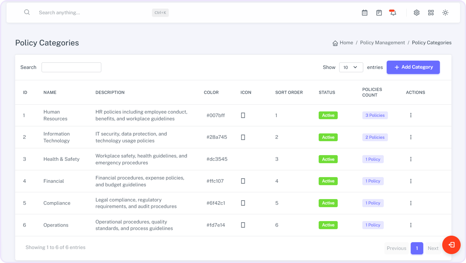View a complete list of all company policies in one place.