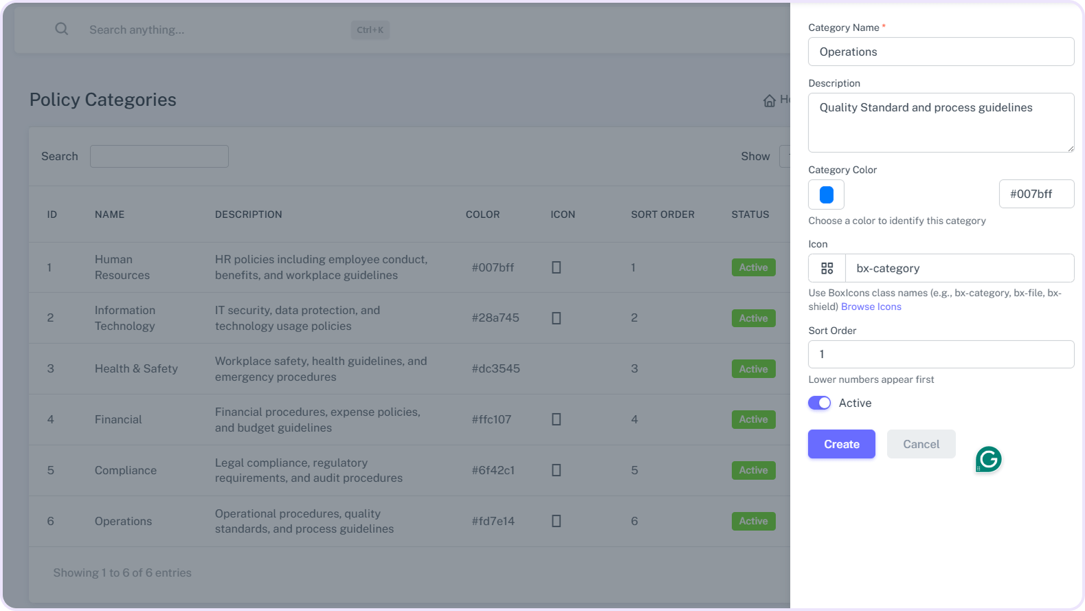 Create new policy categories with a clear and simple name.