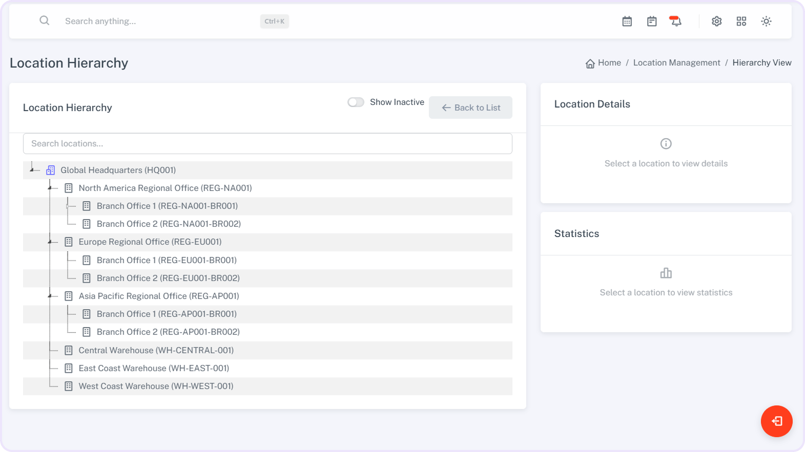 Mark locations as active, inactive, or as headquarters.