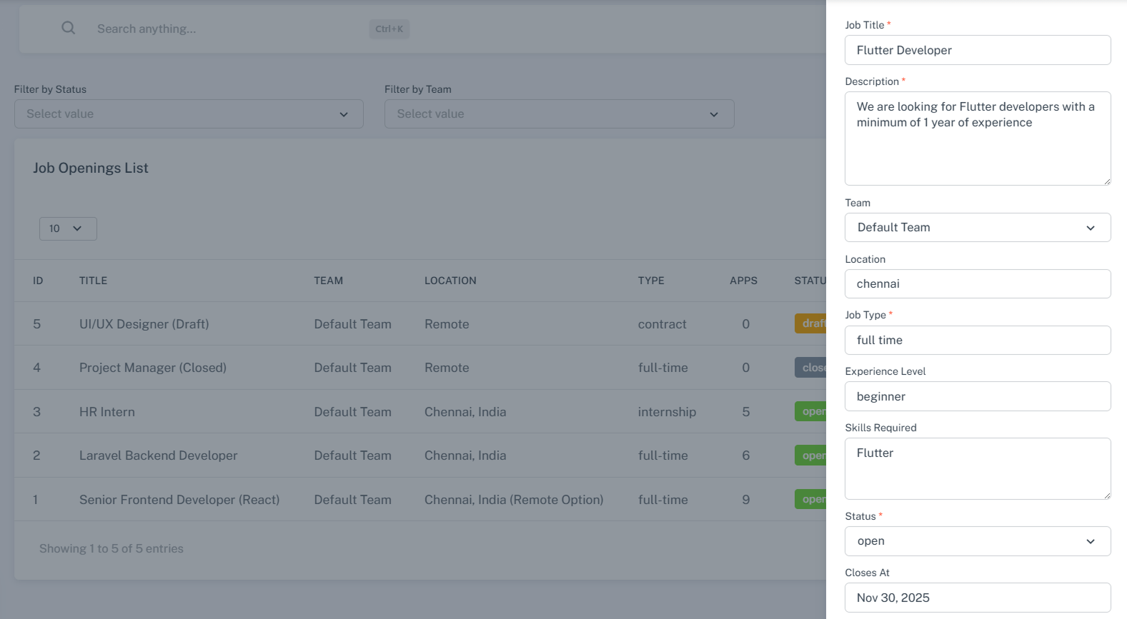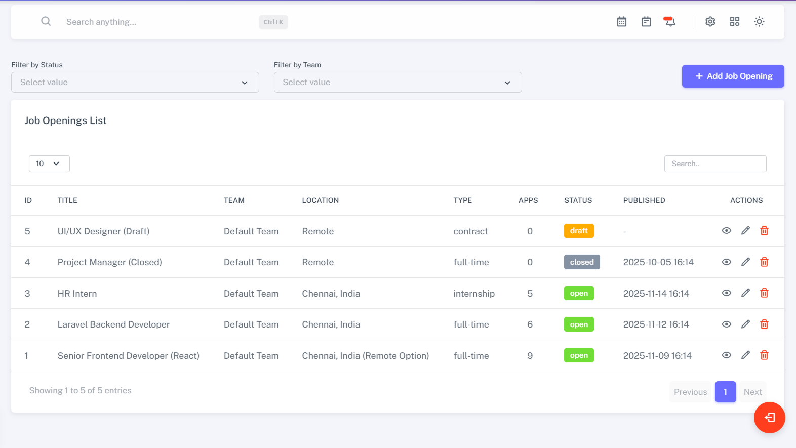 Streamline your hiring process by managing recruitment and onboarding in one place, allowing admins to list job openings, review and shortlist applications, and guide new hires smoothly while helping HR teams save time, improve accuracy, and ensure a better experience for both candidates and managers.