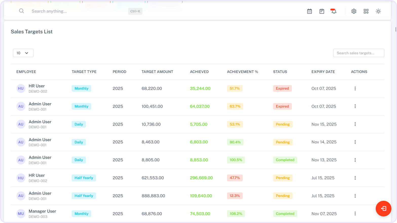 Define and manage sales targets for your field employees on a daily, weekly, or monthly basis. Include fixed or percentage-based incentives to motivate their performance in the field. Track progress in real time and make adjustments as needed by editing or deleting targets. As a result, admins can boost field team productivity, recognize top performers, and achieve business goals efficiently while keeping field employees motivated and accountable.